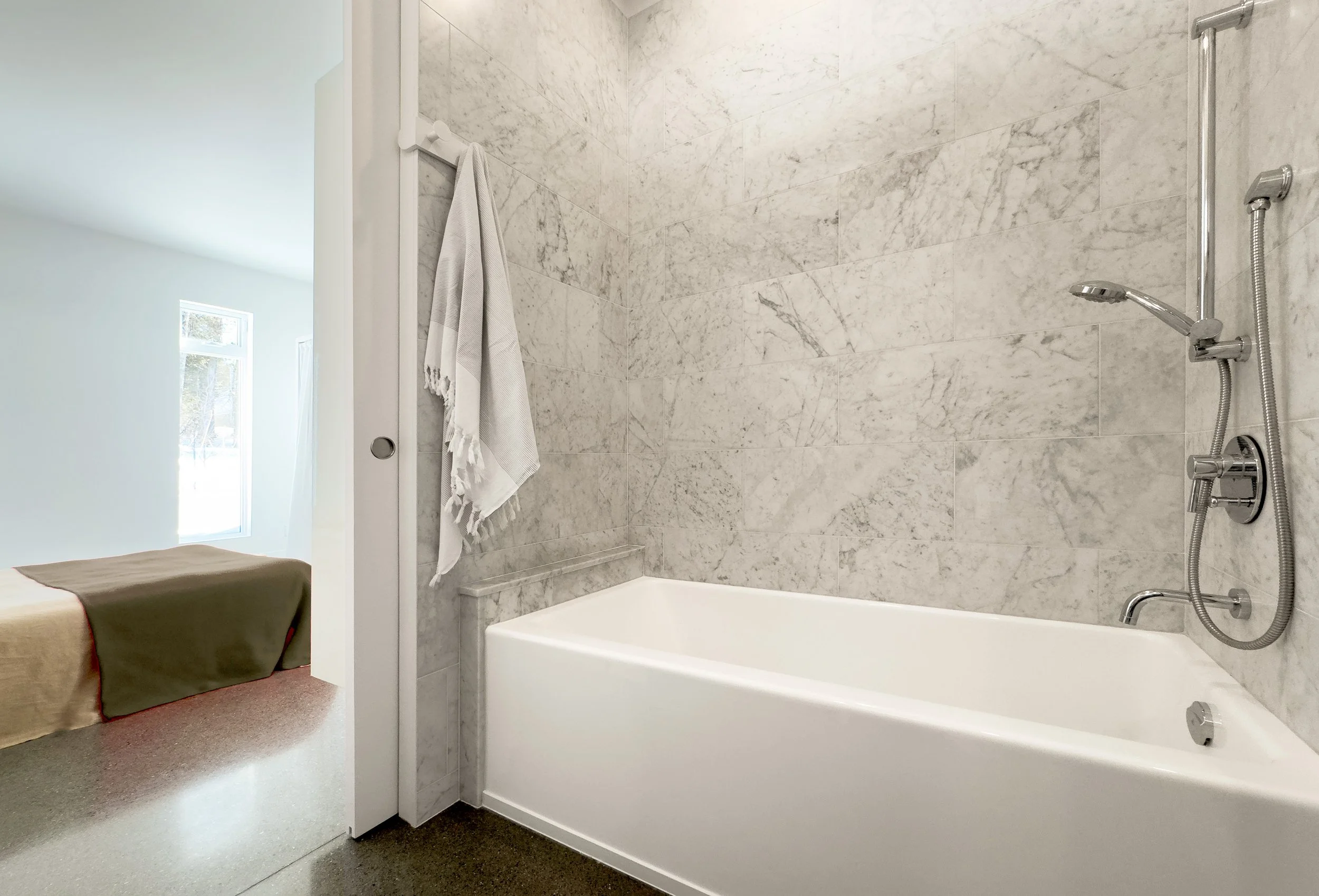 Les occupants ont conçu cette maison comme une habitation pensée pour s’adapter aux changements de leurs besoins au fil du temps. Elle offre la possibilité de reconfigurer les espaces de vie et d’ajouter, au besoin, une chambre supplémentaire. Un bâtiment accessoire, tel qu’un studio, peut également être implanté à l’arrière du terrain ; la sortie électrique, déjà prévue dans le mur extérieur, en facilite l’aménagement futur.
