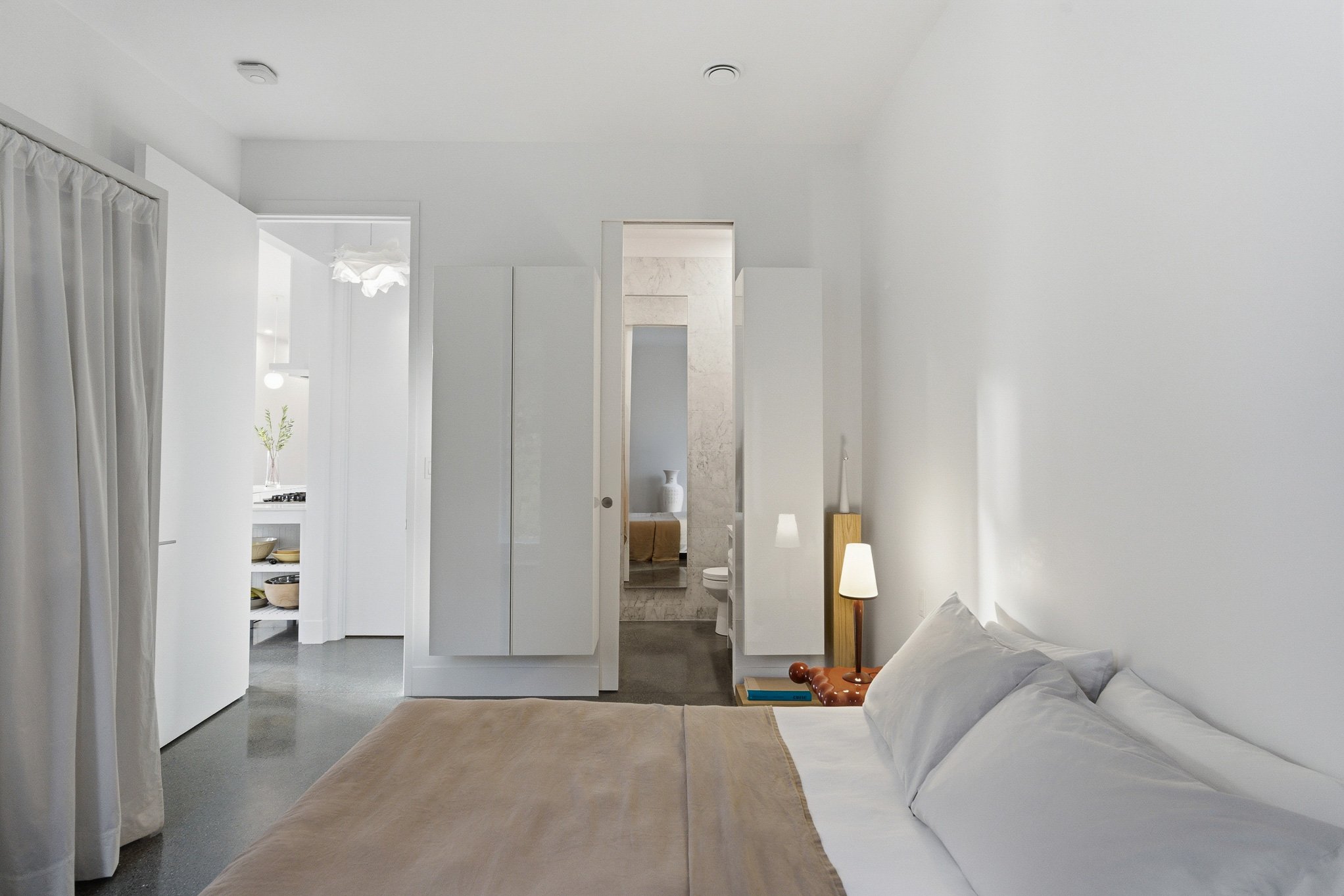 Le volume simple et compact favorise une abondante lumière naturelle grâce à de larges ouvertures en façade côté cour, assurant également une ventilation traversante efficace. La géométrie rectangulaire, combinée à une belle hauteur sous plafond et à l’intégration de nombreux rangements, confère à l’ensemble une sobriété maîtrisée et une cohérence architecturale durable.